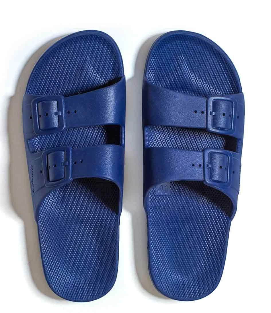 Les Basic Kids Slides de la marque Freedom Moses sont des sandales incontournables pour les enfants. Avec leur nez ouvert et leur couleur Navy, ces slides sont à la fois tendance et confortables.